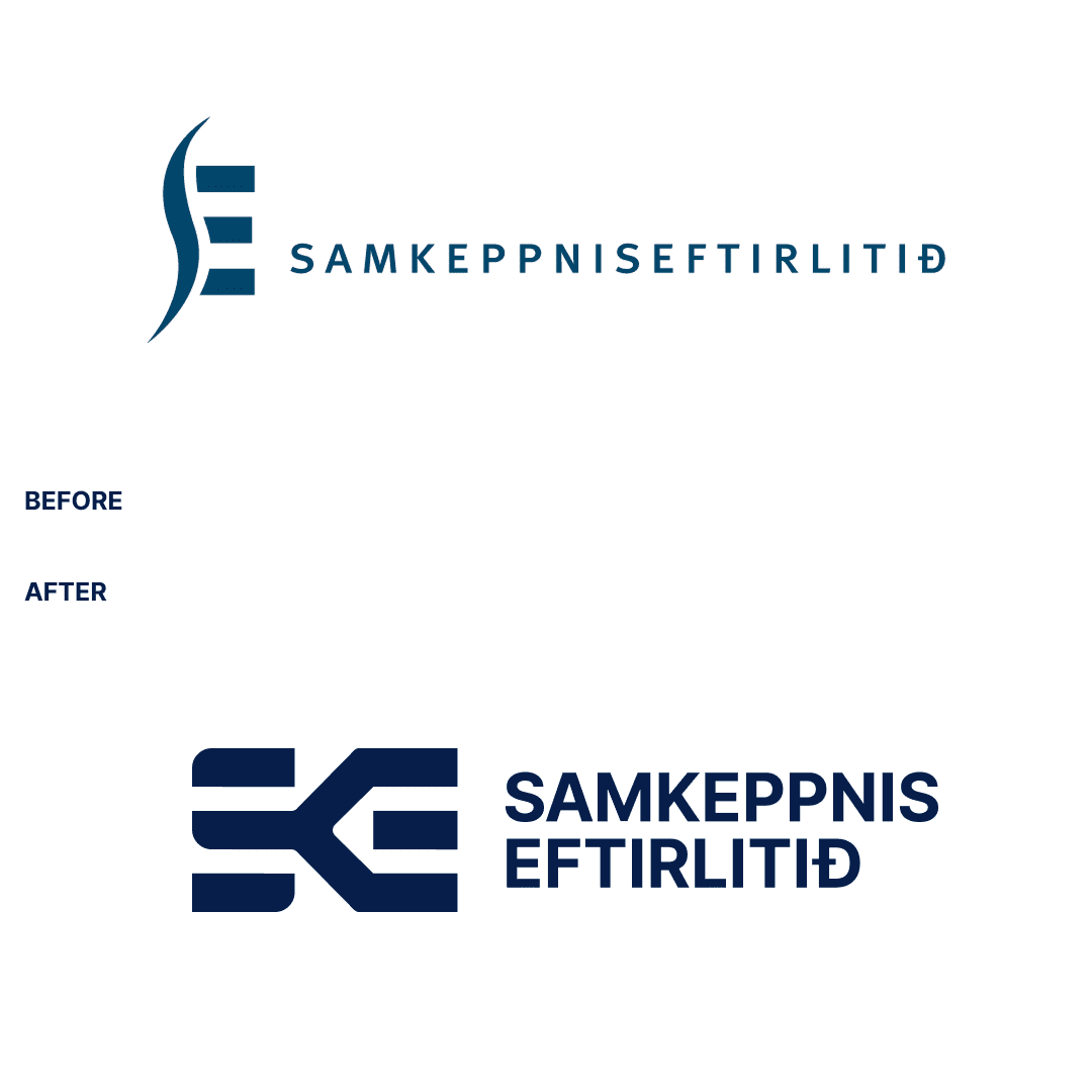 The existing logo was built as a monogram using the letters SE for Samkeppniseftirlitið, but it lacked visual unity. The “S” and “E” were drawn in entirely different styles, making the mark feel more like two separate logos than a single, cohesive identity. Proportions were inconsistent, and the logo performed poorly at smaller sizes, limiting its usability across digital and official applications.